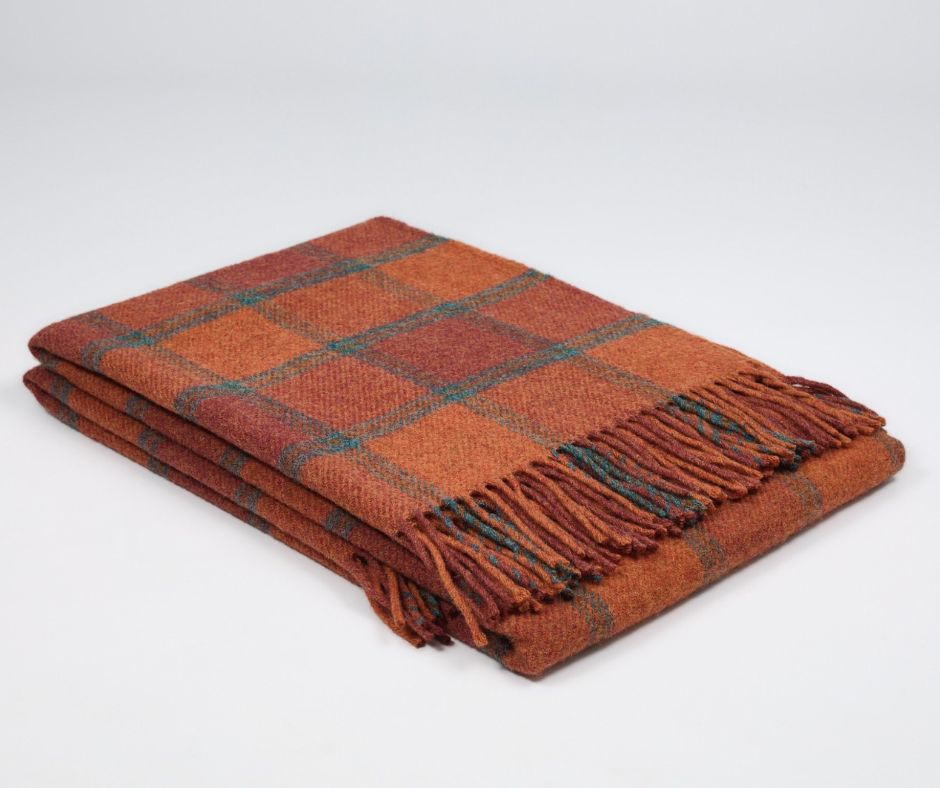 Be the first to review “Manta de cuadros 100% lana 140 x 200 cm Shetland naranja”