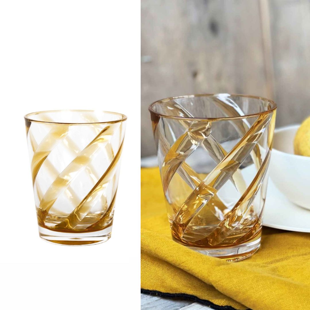 Vaso acrílico transparente raya en espiral ámbar